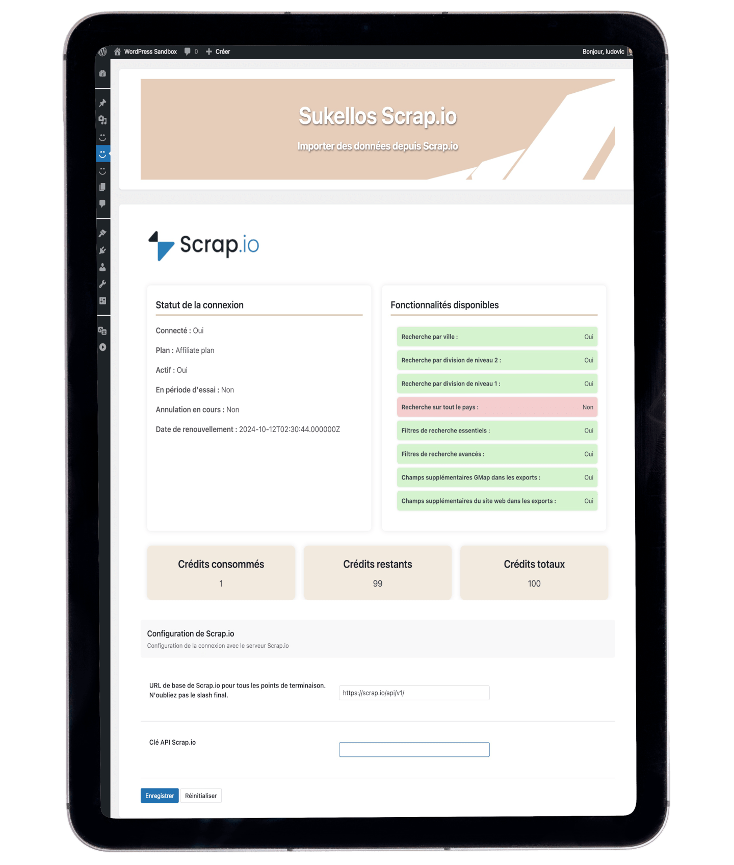 La première version de notre plugin est entièrement gratuite et nécessite simplement une inscription sur Scrap.io pour accéder aux fonctionnalités. Cela vous permet d’explorer toutes les capacités de notre outil sans coût supplémentaire.